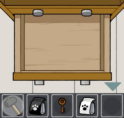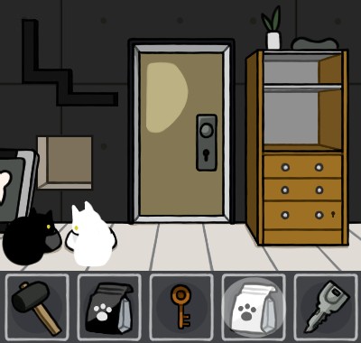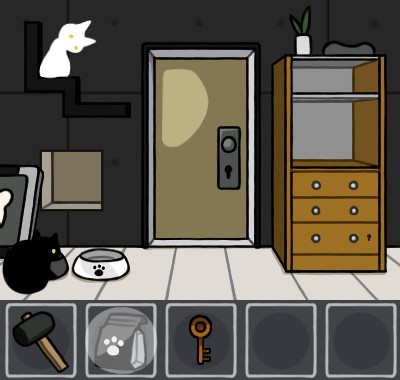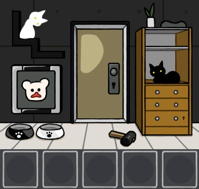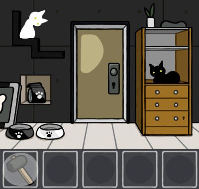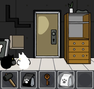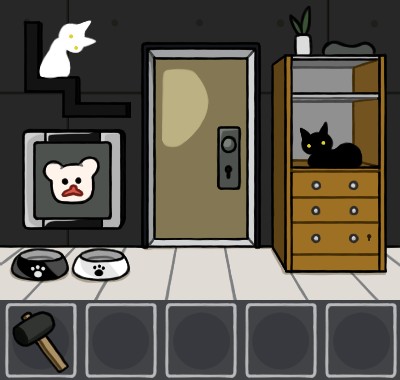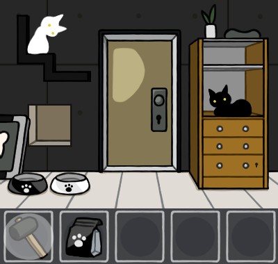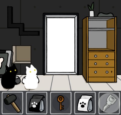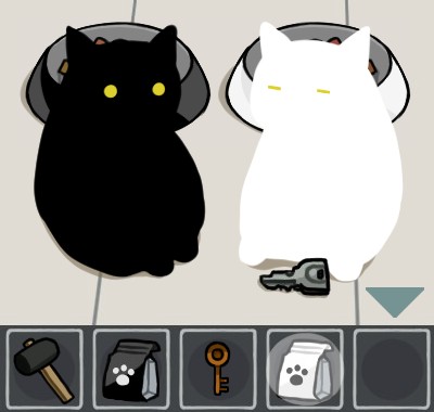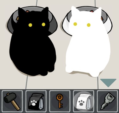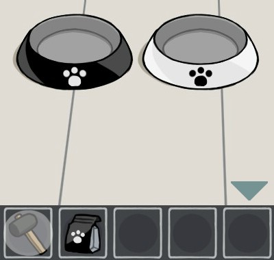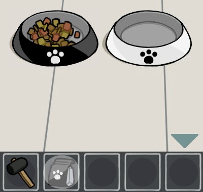 白いエサ皿に「猫のエサ(白)」を入れて、手前に戻る。