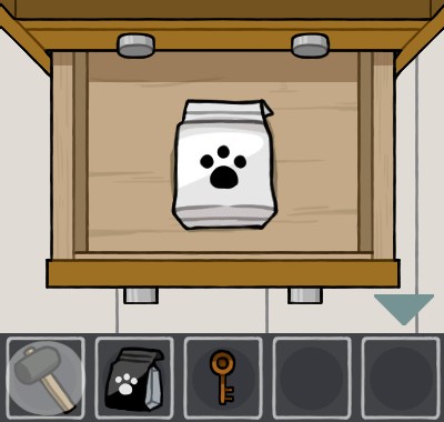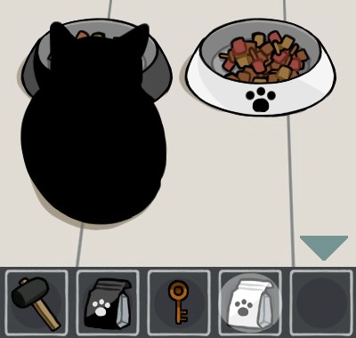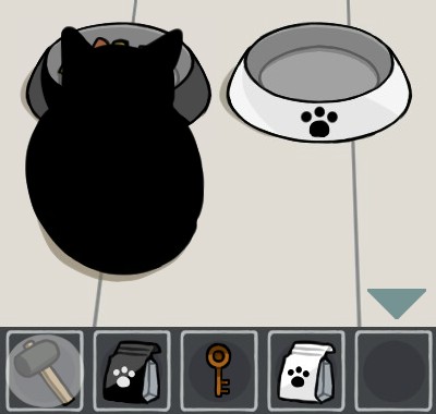 黒いエサ皿に「猫のエサ(黒)」を入れて、手前に戻る。