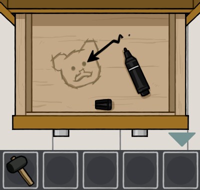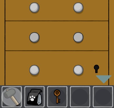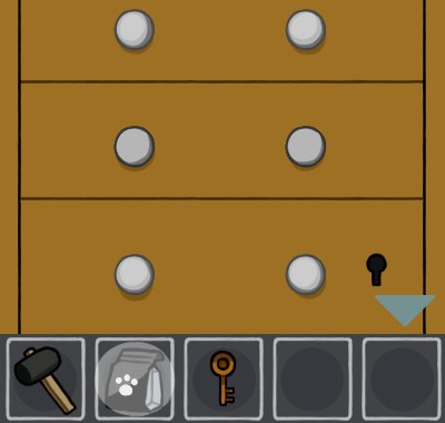 下の引き出しを「カギ」で開けて、「ハンマー」を使う。