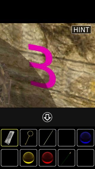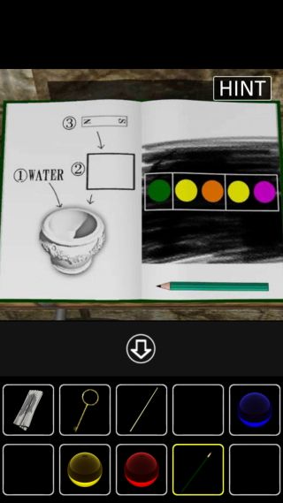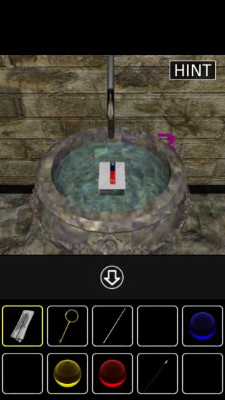 水の入った鉢の右奥を調べて、『紫の3』を確認。