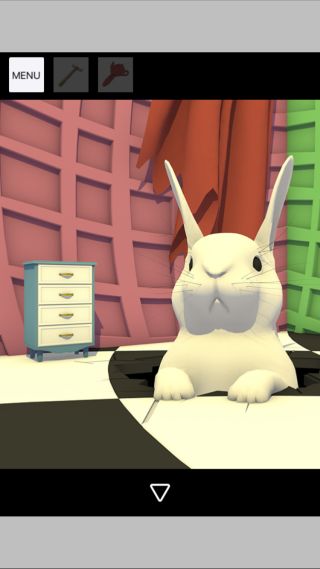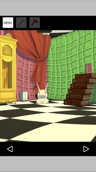 前の部屋に戻って、柱時計の右にいるウサギを拡大。