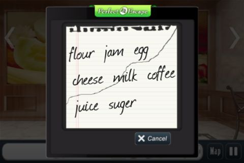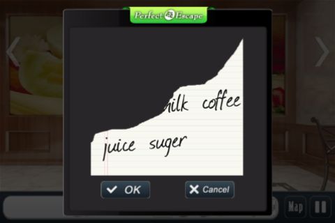 PerfectEscapeII 無料 0 評価する 送信する 攻略その4 冷蔵庫を開けて「チーズ」を入手。 同じく「牛乳」と「卵」を入手。 隣の部屋に移動して、左へ。 「ハンマー」を使って壁を崩す。 「メモ」を入手。これで2枚が揃って読めるようになる。 「コーヒー豆」を再取得して「コーヒーの粉」にする。 「ベリー」を再取得して、フードマシンの前へ。 「ベリー」を使って「ジャム」を入手。 前の部屋に戻り、「小麦粉」と「オレンジ」を再取得する。 「オレンジ」を「ジュース」にして、「コーヒーの粉」を「コーヒー」にする。 攻略その1 攻略その2 攻略その3 攻略その4 攻略その5
