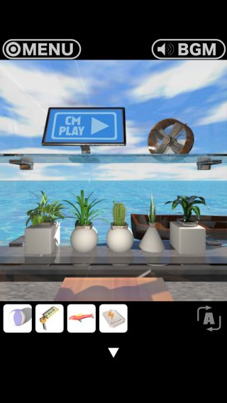 ガラス棚の鉢の形『■●●▲■』を確認。