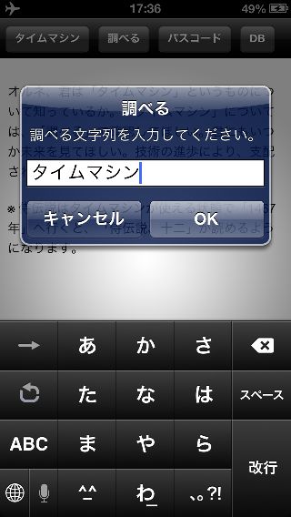 スタートしたら、「調べる」で『タイムマシン』を入力する。