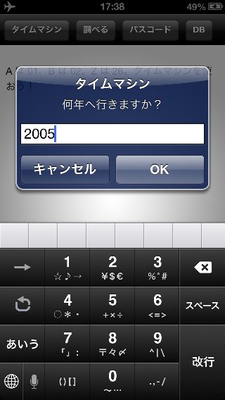 『T=20、N=14』なので、「タイムマシン」で『2014』を入力する。