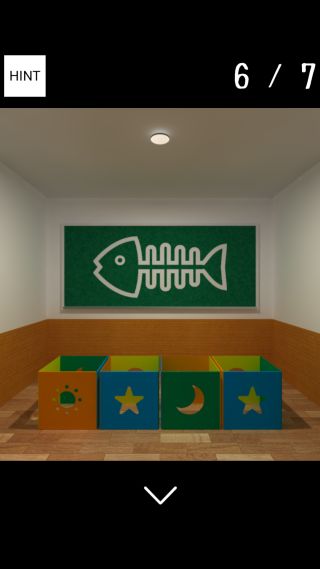 オレンジの部屋の黒板の矢印が、魚の骨になっている。
