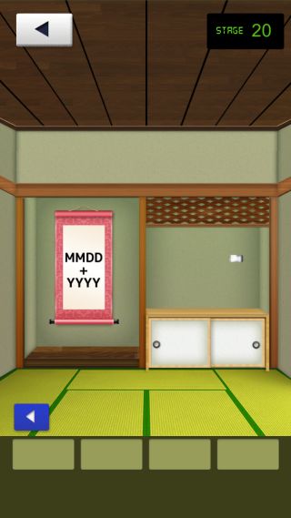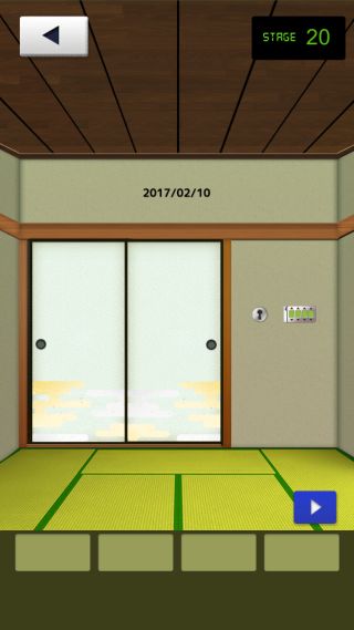 和の脱出ゲーム!「THE 和室」 無料 1.5 評価する 送信する HAYATO SAITO(yamada tarou) STAGE 20 上の日付を確認して、右に移動。 掛け軸を調べて、日付を当てはめると『2017+210』となる。 左に移動。 壁の装置を『2227』に合わせる。 出口をタップする。 STAGE 1 STAGE 2 STAGE 3 STAGE 4 STAGE 5 STAGE 6 STAGE 7 STAGE 8 STAGE 9 STAGE 10 STAGE 11 STAGE 12 STAGE 13 STAGE 14 STAGE 15 STAGE 16 STAGE 17 STAGE 18 STAGE 19 STAGE 20 STAGE 21 STAGE 22 STAGE 23 STAGE 24 STAGE 25 STAGE 26 STAGE 27 STAGE 28 STAGE 29 STAGE 30 STAGE 31 STAGE 32 STAGE 33 STAGE 34 STAGE 35 STAGE 36 STAGE 37 STAGE 38 STAGE 39 STAGE 40