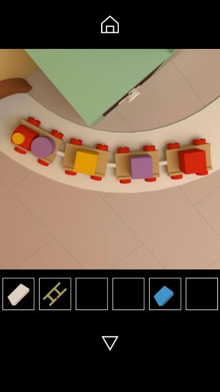 ここのヒントはおもちゃの汽車を上から見た時の色の並びになる。