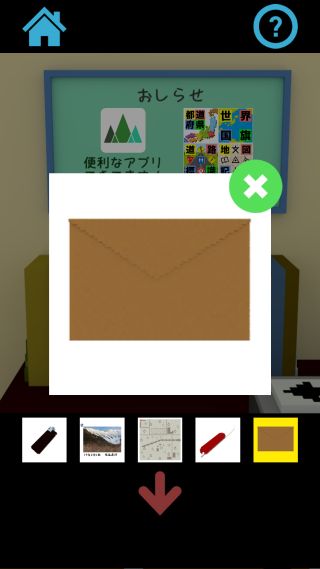 机の上の本を拡大して、本の間から「封筒」を入手。