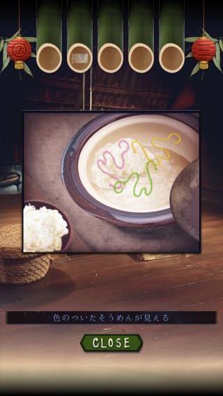 「箸」を使って、3色のそうめん『ピンク、緑、黄』を確認。