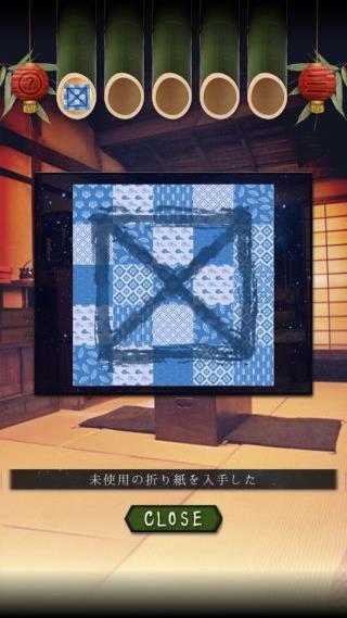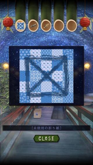「未使用の折り紙」の図形の消えている部分が『左右左左右下』の順となるので、「鈴」を使ってその順番で動かす。