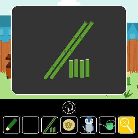 右に3回移動して、「兜をかぶったペンギン」を使って竹を切る。