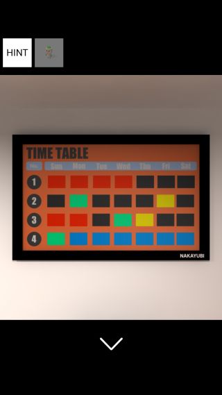ここのヒントはタイムテーブルの曜日の『水1、水4、金2、月2』の色を見ると『赤青黄緑』となる。