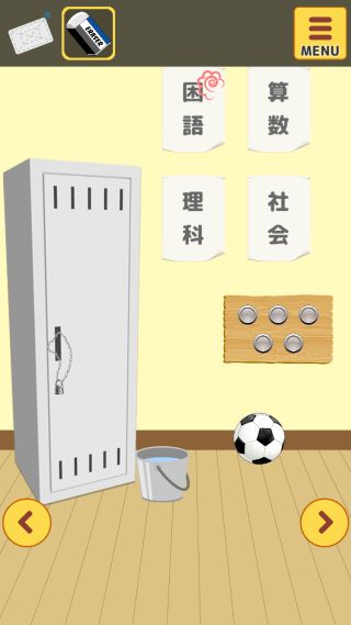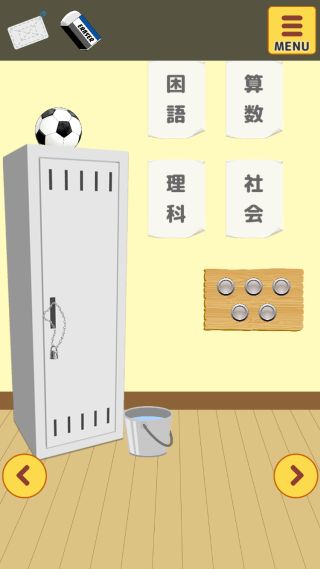 黒板を拡大して、右下の5つのマグネットの色の並びを確認。