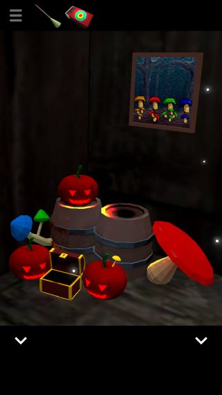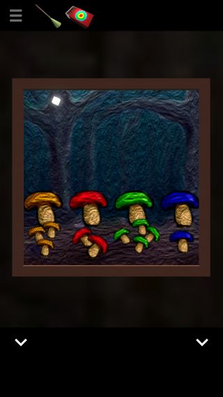 奥を拡大して、4色のキノコを大きさの順で『黄緑青赤』なのを確認。