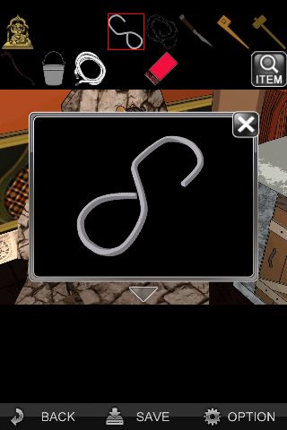 右の棚の左上の天井を調べて、「フック」を引っ掛ける。