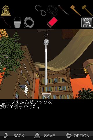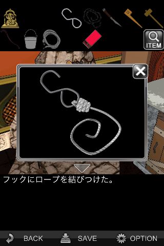 「フック」に「ロープ」を結ぶ。