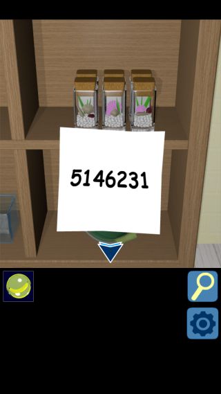 棚の小物の数は1~6になっていて、メモの数字を当てはめると『左上、右下、左下、右上、中上、中下、右下』となる。