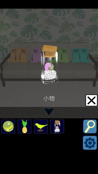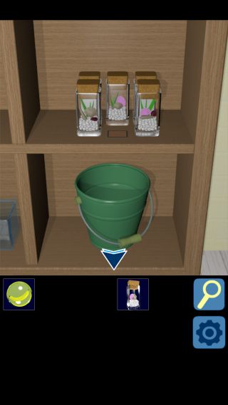 ピンクのクッションを持ち上げて、「小物(ビン)」を入手。