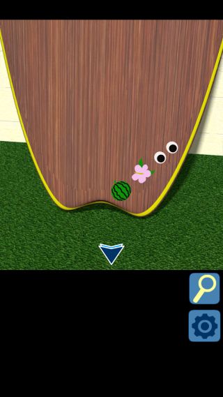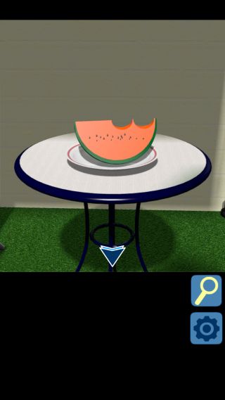 スイカを拡大して、横にして見ると数字の『3』の形に欠けているのを確認。