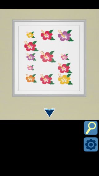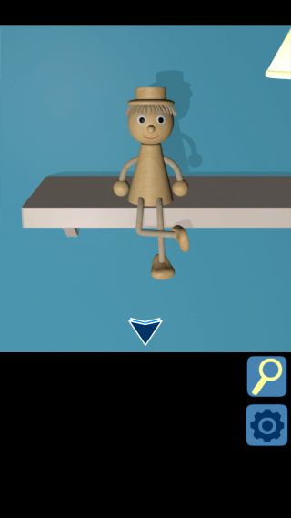 目は、部屋の壁の棚にある人形の足が『4』の形になっている。