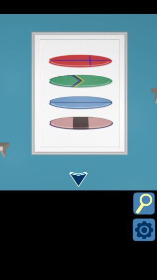 ここのヒントは部屋に飾られていたサーフボードの額にある。