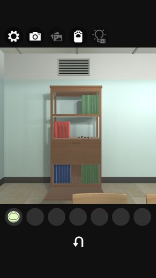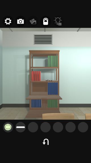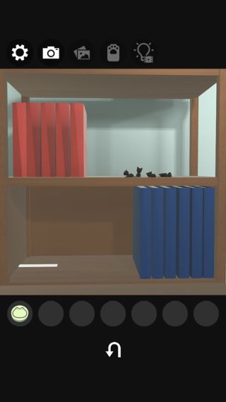 手前に戻って、本棚の3色の本の配置と色を確認。