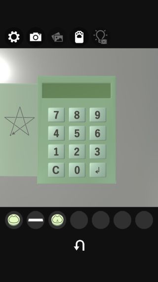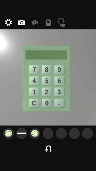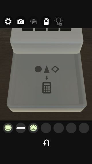 「丸いパーツ(口)」を入手して、底の電卓の絵と『●▲◇』を確認。