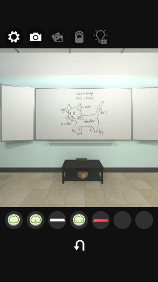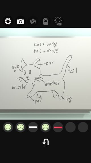 ホワイトボードを拡大して、『耳=ear、口=muzzle、ヒゲ=whisker』を確認。