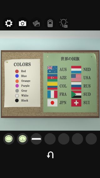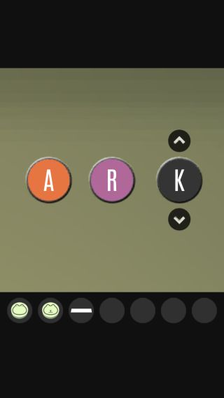 左の紙を拡大して、『オレンジの3文字目=A、紫の3文字目=R、黒の5文字目=K』を確認。