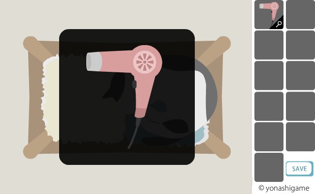猫のベッドの上から「ドライヤー」を入手。