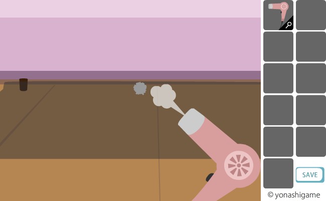 ソファーの舌を調べて、紙くずに「ドライヤー」を使う。