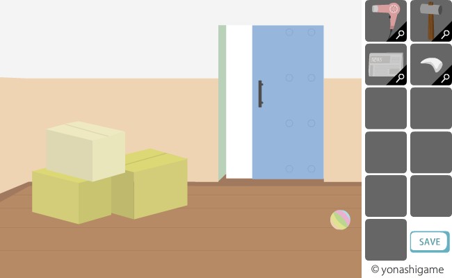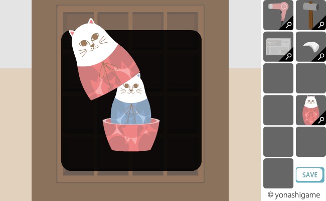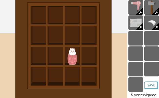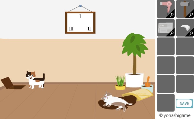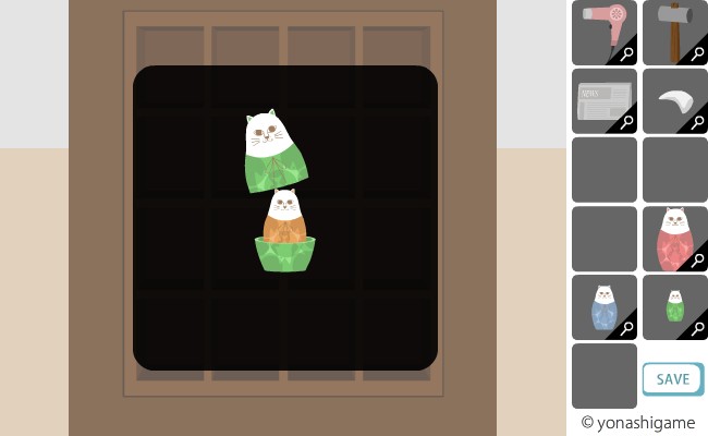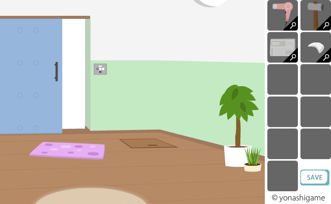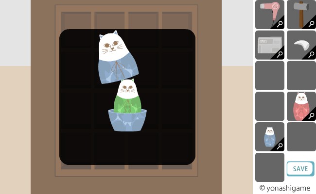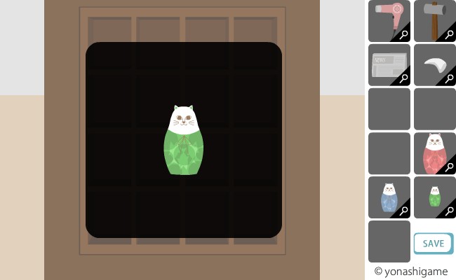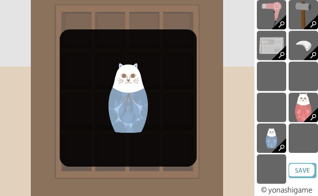ここのヒントを前の部屋の破れた障子と、左の魚の大きさ。