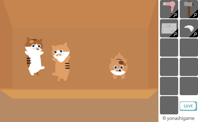 箱を動かして、茶色いダンボール箱の中に子猫がいるのを確認。