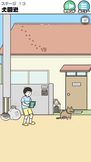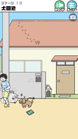 ステージ13で、犬のヒモを杭に付けてインターホンを押す。