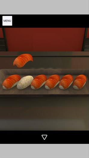 寿司ネタを持ち上げて、ワサビがあるのが左から『1、4、5番目』なのを確認。