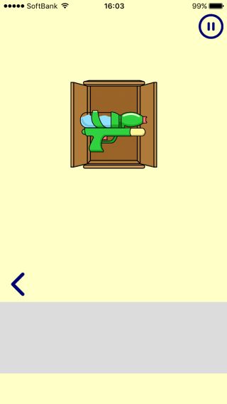 脱出ゲーム かくれんぼ 無料 3.3 評価する 送信する Unison Kon Sugimoto 3かいめ 右に移動。 クローゼットを開けて、「水鉄砲」を入手。 左に移動して、おじさんに「水鉄砲」を使う。 1かいめ 2かいめ 3かいめ 4かいめ 5かいめ 6かいめ 7かいめ 8かいめ 9かいめ 10かいめ 11かいめ 12かいめ 13かいめ 14かいめ 15かいめ 16かいめ 17かいめ 18かいめ 19かいめ 20かいめ