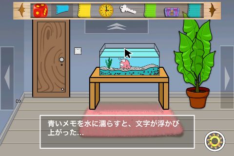 脱出ゲーム 夜 無料 0 評価する 送信する 攻略その4 ふたが開いて「鍵」を入手。 スタート地点に移動して、ドアの横のスイッチを消す。 「みどりの本」と「みどりのメモ」を暗闇で使用して文字を確認。 電気をつけて右の植木を調べる。 「ドライバー」で掘って「箱」を入手。 水槽に「青いメモ」を使う。 「花瓶」に水槽の水を入れて、ベッドの前に移動。 ベッドのシーツに「花瓶」の水をかけて「青いメモ」を入手。 金庫を調べる。 各色の「ハズレメモ」をヒントに、その色の点から真っ直ぐ線を引いてその部分が空欄になる。 残ったマスを赤くしていく。 攻略その1 攻略その2 攻略その3 攻略その4 攻略その5