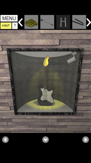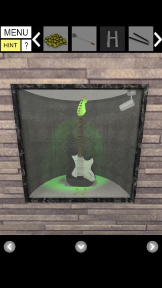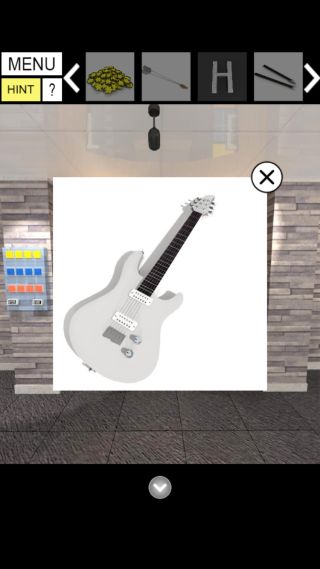 ショーケースを左から順に見て、ギターの下の音符の数を色ごとに確認していく。
