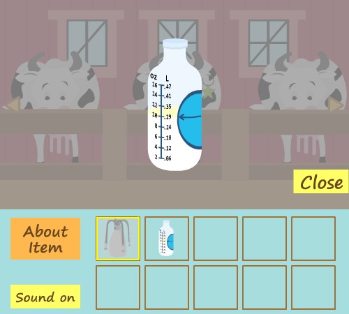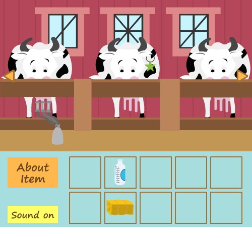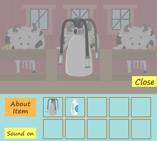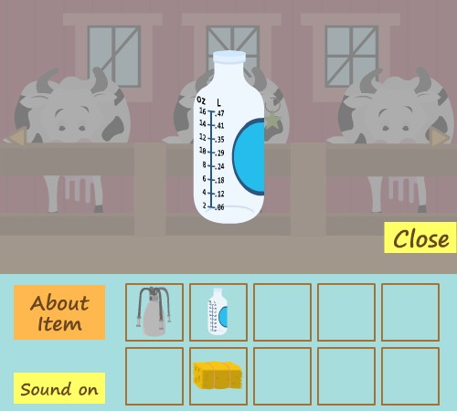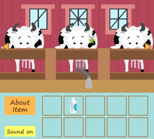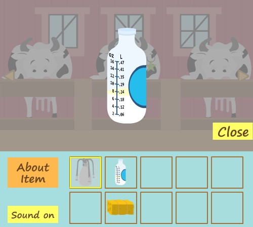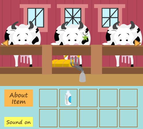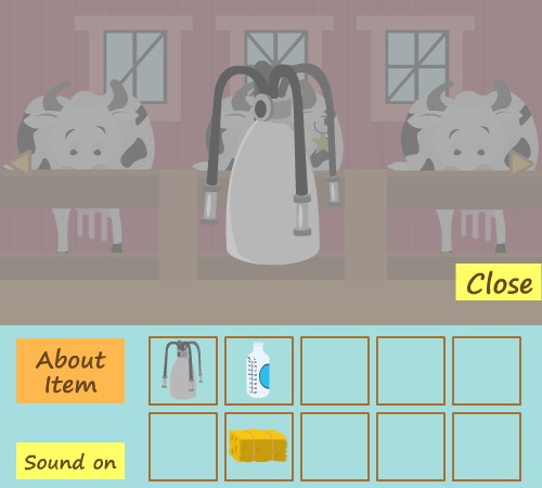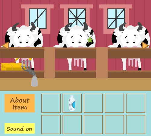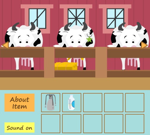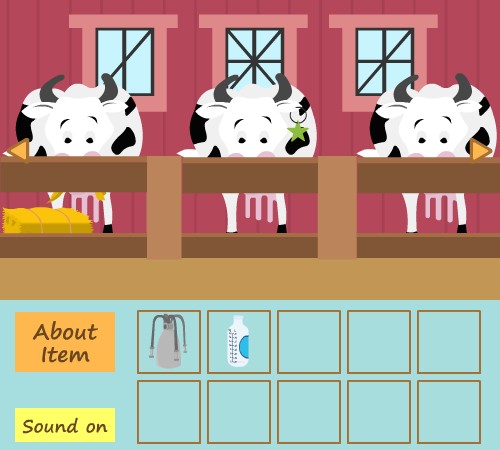 中央の牛に「藁」を使って、「搾乳機」を取り付ける。