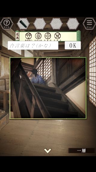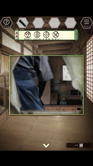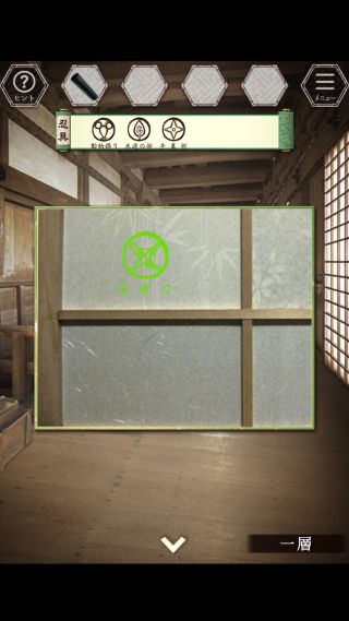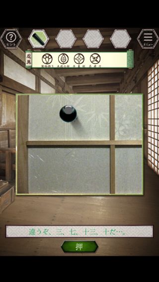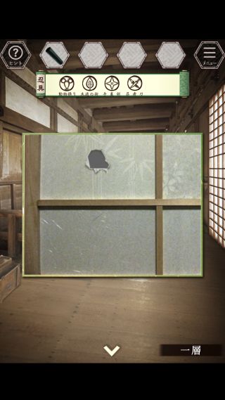 右の障子を拡大して、「忍者刀」で穴を開ける。