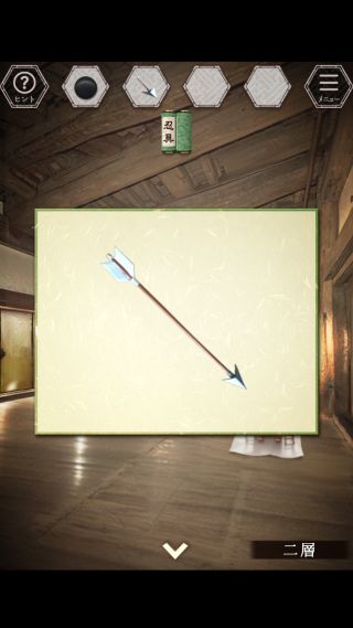 左奥の壁を調べて、「矢」を入手。
