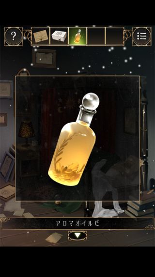 鏡を拡大して、下の器に「アロマオイル」を入れる。