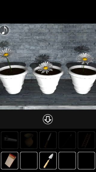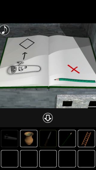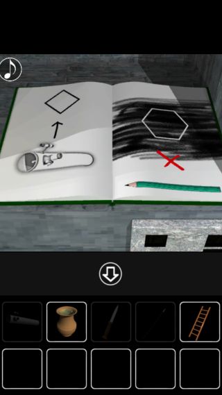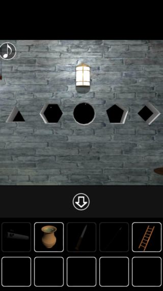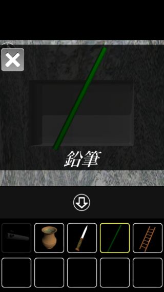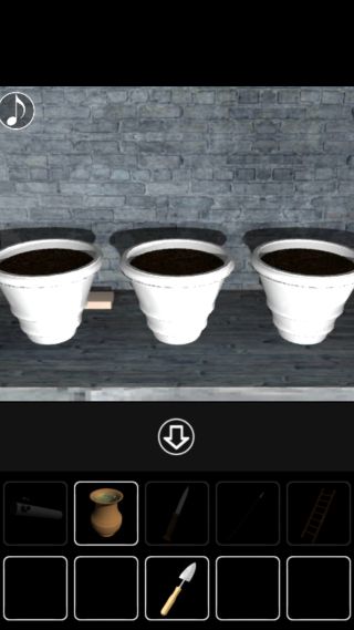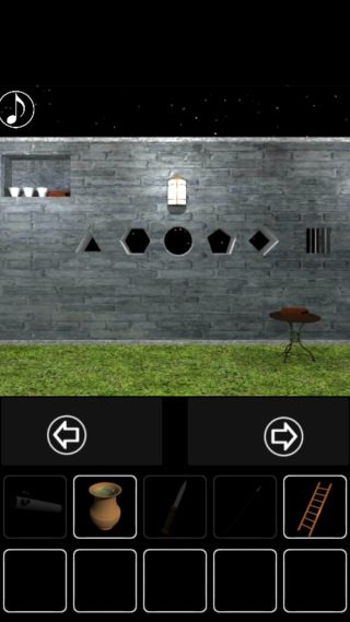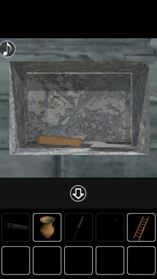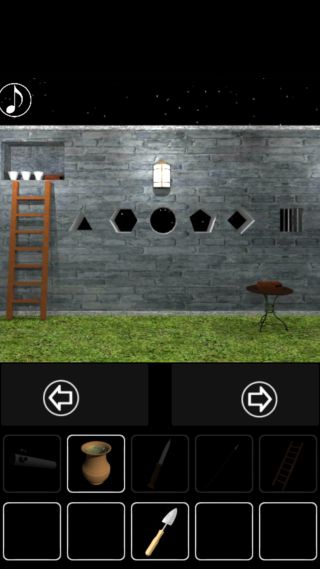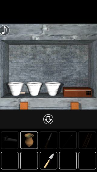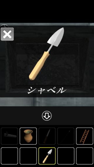 「シャベル」を入手して、左の壁に「梯子」をかける。