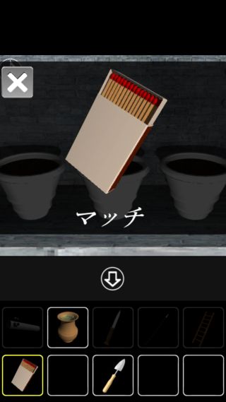 「マッチ」を入手して、植木鉢に「水の入った壺」を使う。