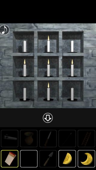 左の壁のろうそくを拡大して、「マッチ」で全てに火をつける。