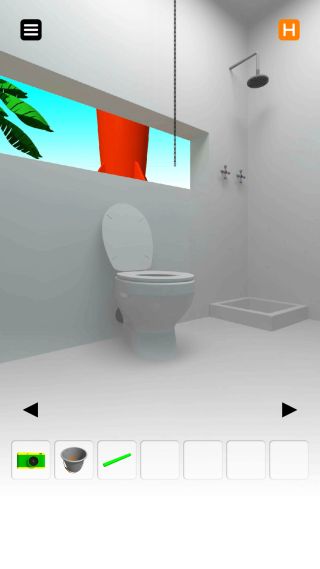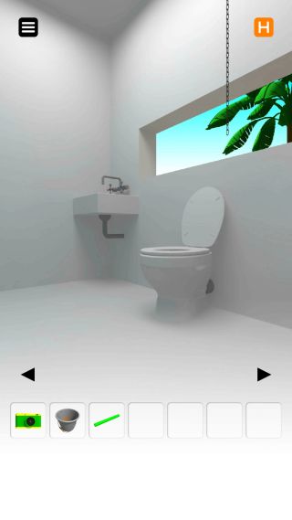 「ガムテープ」で穴を塞いで、左の扉からトイレに移動。