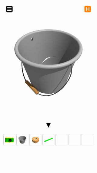 「ガムテープ」を入手して、「穴の空いたバケツ」を拡大。