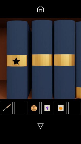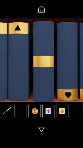 本棚の本の背表紙を調べて、『三角形=上、星=中、ハート=下』を確認。