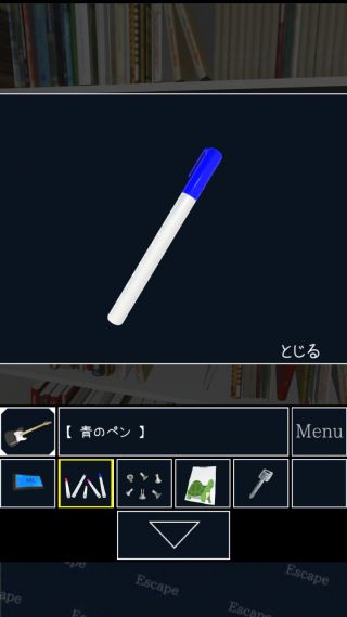 右上の写真立てを拡大して、左端から「青のペン」を入手。